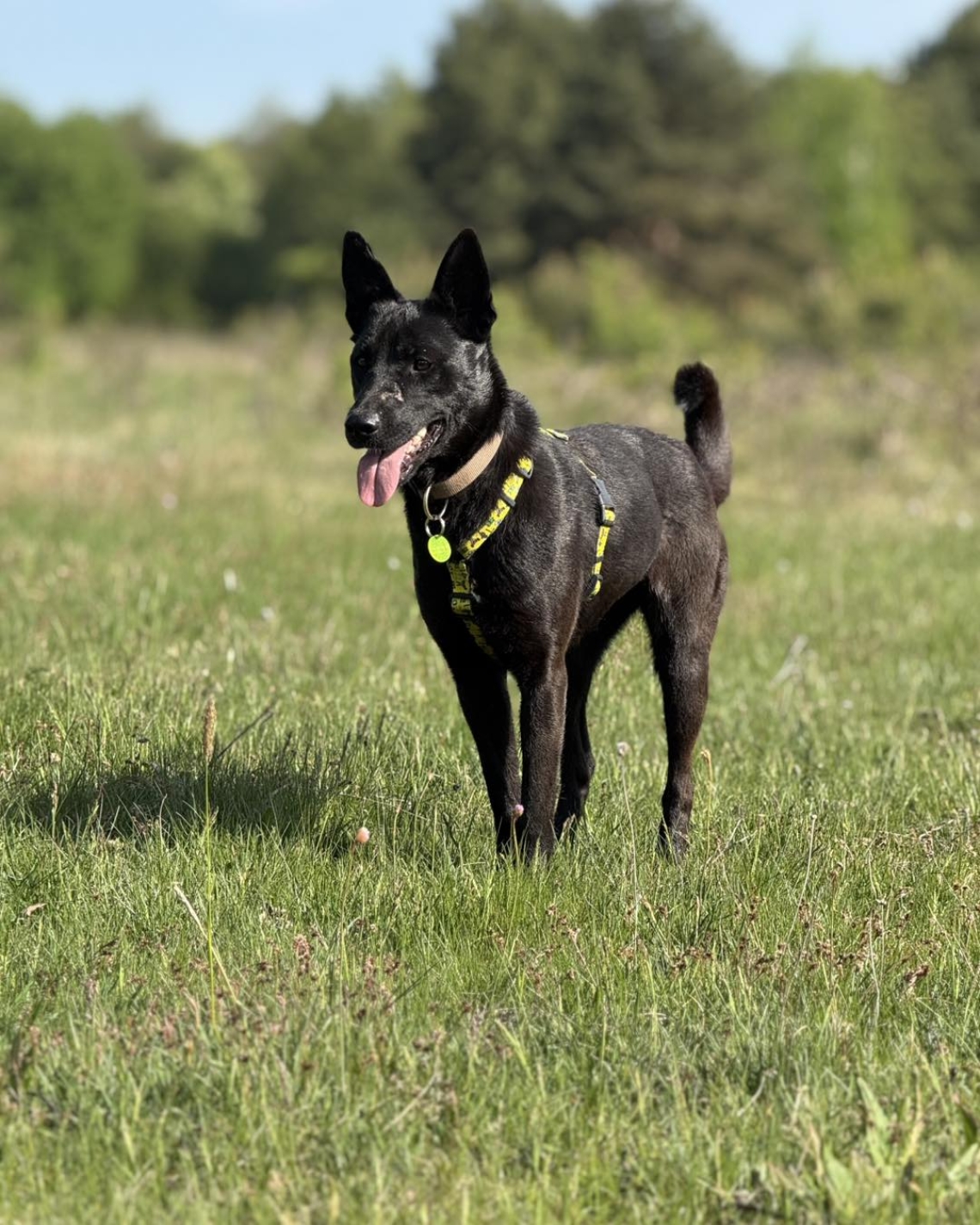Niestety widać, że suczka nie zaznała zbyt wiele dobrego od człowieka. Teraz już spokojnie, choć niepewnie, czeka na założenie szelek i podpięcie smyczy - kocha spacery więc kojarzy to dobrze. Z jednej strony bardzo chce uwagi człowieka i głaskania, a z drugiej wciąż się trochę spina przy dotyku